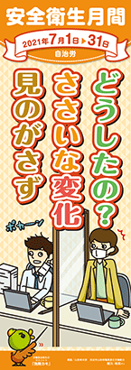 自治労は毎年7月を安全衛生月間と位置づけ、すべての職場での安全衛生点検活動を進める取り組みを行っている。労働災害撲滅と安心・安全で快適な職場環境をめざして、各単組、各職場単位で取り組みを進めよう。